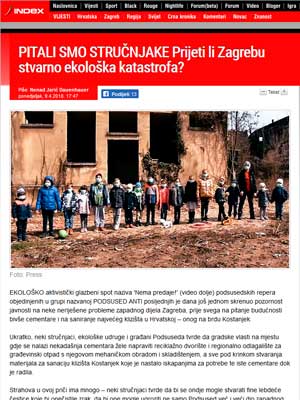 Ukratko, neki stručnjaci, ekološke udruge i građani Podsuseda tvrde da gradske vlasti na mjestu gdje se nalazi nekadašnja cementara žele napraviti reciklažno dvorište i regionalno odlagalište za građevinski otpad s njegovom mehaničkom obradom i skladištenjem, a sve pod krinkom stvaranja materijala za sanaciju klizišta Kostanjek koje je nastalo iskapanjima za potrebe te iste cementare dok je radila.